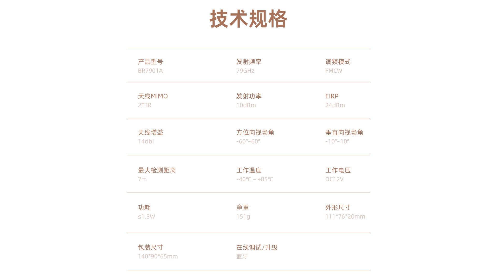 BR7901A是一款采用79GHz毫米波技术的全类型通用道闸防砸雷达。它能够替代传统地感线圈,与道闸控制系统协同工作,确保车辆和行人的安全通行。该款雷达具有多项优点,如全天时全天侯工作,检测精度高,安装维护便捷,无需切割路面,抗干扰能力强,可通过小程序轻松调试雷达等特点。该款雷达工作频率为79GHz,它能够精确识别经过闸杆区域的行人、车辆等目标,有效防止“砸车”、“砸人”、“不落杆”等事故的发生。BR7901A是高性能、智能化的道闸防砸雷达,为用户提供更加安全、便捷、可靠的道路通行体验。
